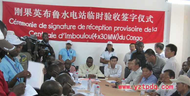 剛果(布)英布魯水電站位于剛果(布)首都布拉柴維爾以北215公里處的萊菲尼河上,是中剛兩國合作重要的項目之一。于2005年6月動工,2009年1月實現(xiàn)大壩截流,2010年1月機組啟動運行,6月全部建成發(fā)電。水電站共裝備4臺水輪機組,總裝機容量為12萬千瓦,其建成將使剛果(布)基本實現(xiàn)電力自給,為剛經(jīng)濟持續(xù)發(fā)展及人民生活改善發(fā)揮了巨大作用。