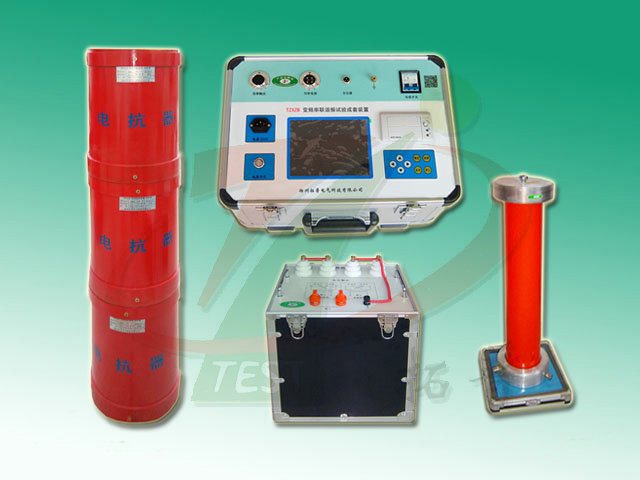 成套設(shè)備主要由變頻調(diào)壓電源1臺、勵磁變壓器1臺、高壓電抗器3臺、電容分壓器1臺、附件箱1件組成。